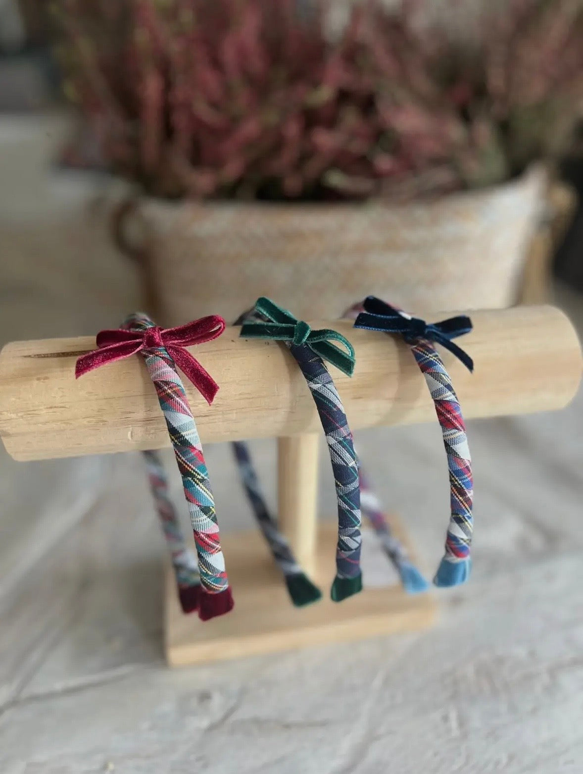Questo cerchietto per bambina taglia unica è disponibile in 3 colori e presenta una stampa tartan con un elegante fiocco in velluto. Perfetto per completare ogni outfit e dare un tocco di stile alle acconciature.