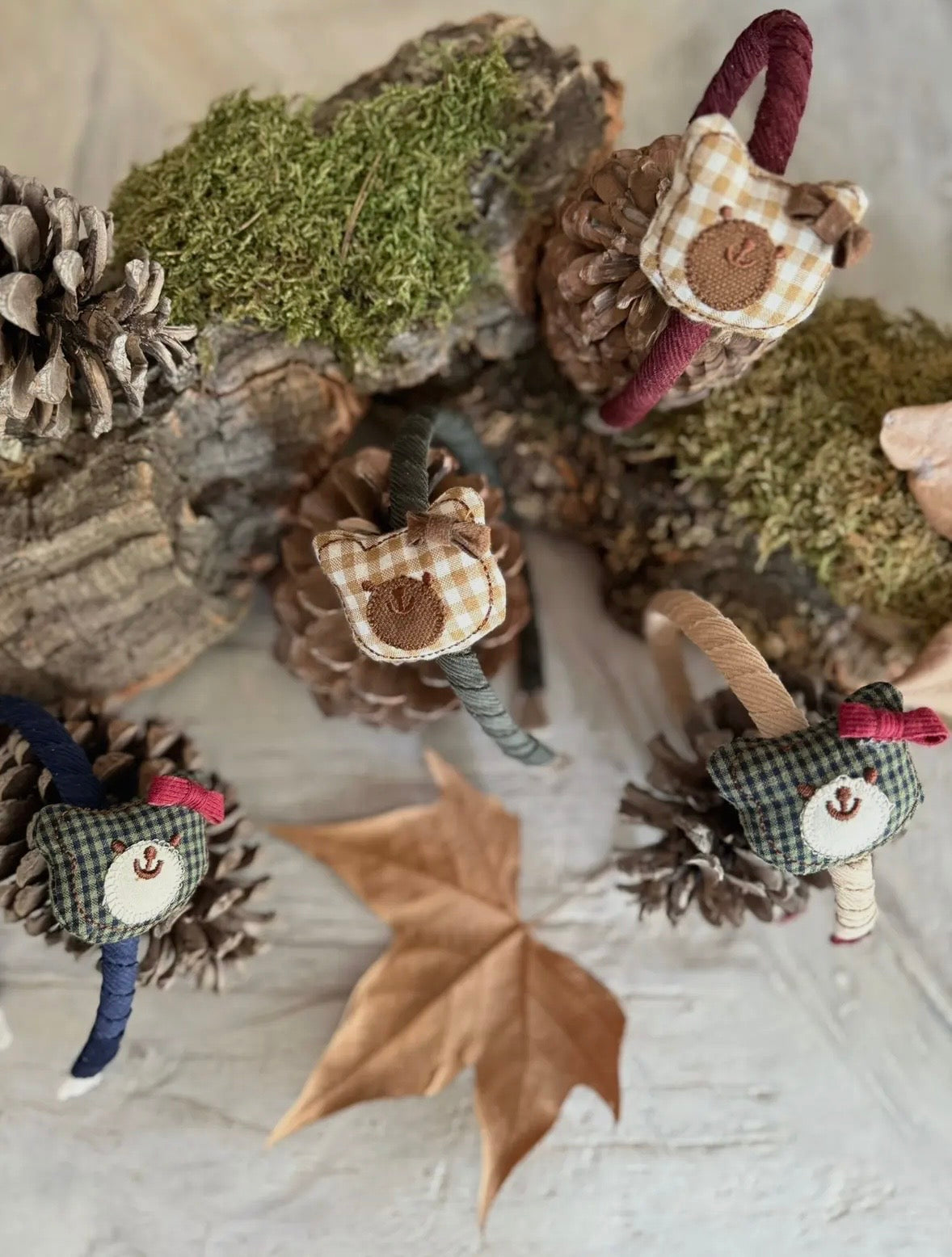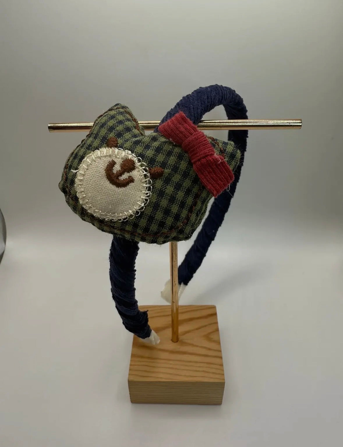 Il cerchietto in velluto a coste è impreziosito da un topping imbottito a forma di orsetto in tessuto a quadretti Vichy. Grazie all'applicazione del nastro di velluto, questo accessorio è comodo da indossare senza fastidi alle orecchie. Taglia unica per bambini dai 3 anni in su.